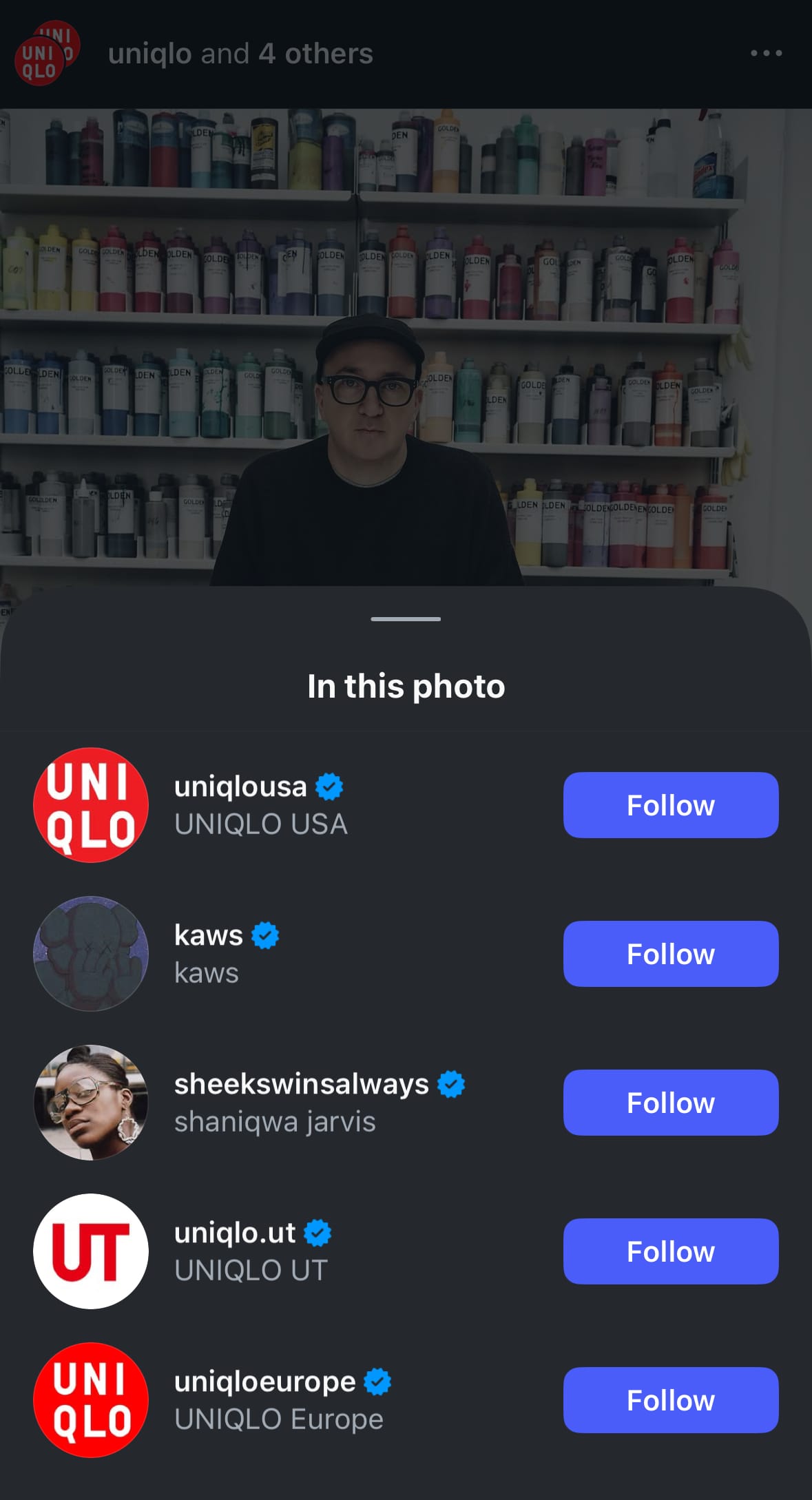 時裝品牌將藝術看得愈來愈重,早年Ralph Lauren邀來美國紡織藝術家Naiomi Glasses為駐場藝術家(Artist In Residence);Uniqlo最近也宣佈委任美國藝術家兼設計師KAWS成為品牌的首位駐場藝術家。帖文除了附上一段「上任」宣言及預告今年秋冬系列帶來新作之餘,還藏有一個有趣的細節。這張合作的官方照Tag了KAWS以外,還Tag了Shaniqwa Jarvis的官方帳號。這並非全新拍攝的照片,影像中也沒有其他人的身影,究竟她是誰?