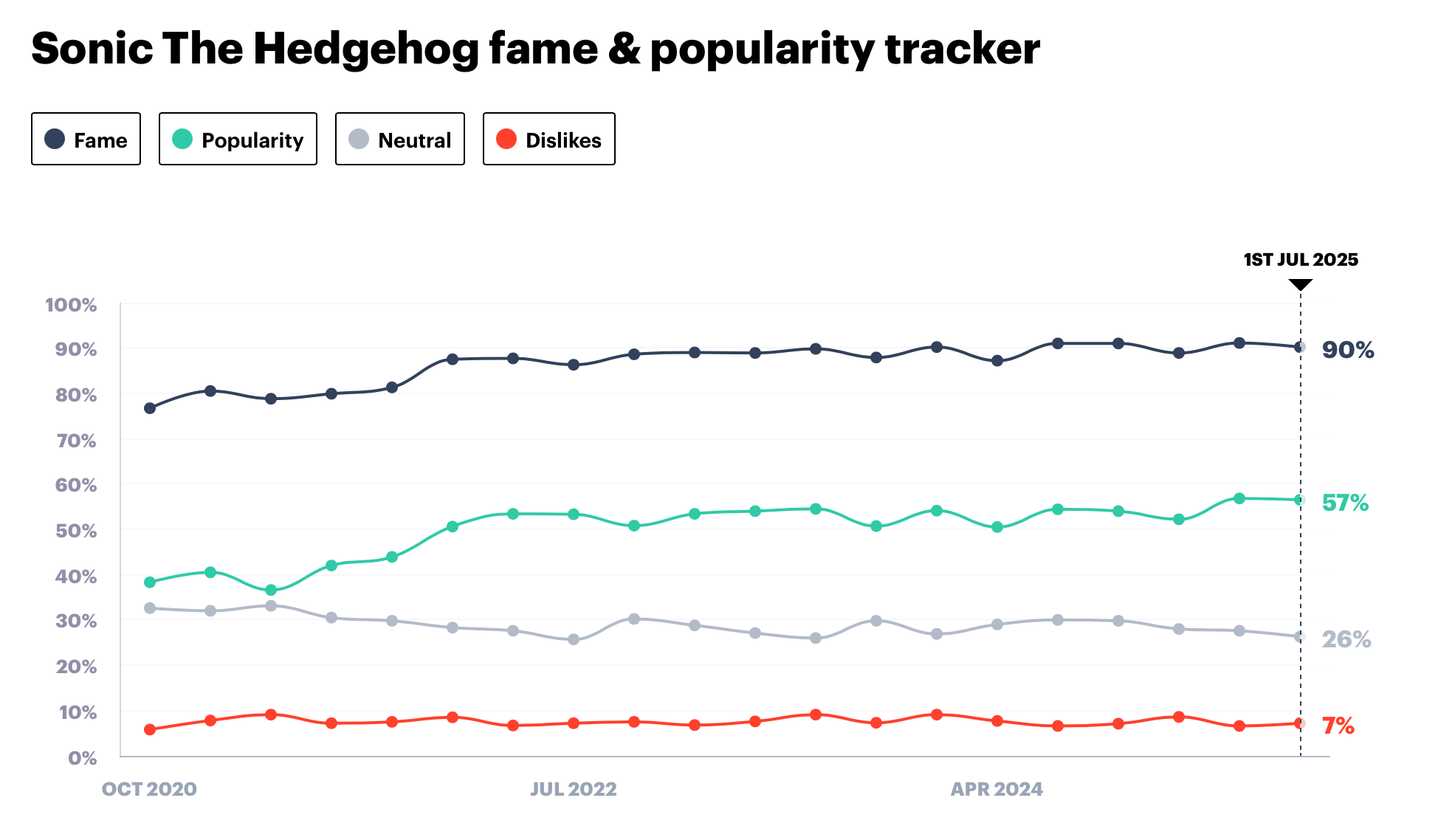 雖說是90年代的角色,但據外國2021年一項針藝Gen Z的調查顯示,認得超音鼠的比率與比卡超及Mario相約,還比Mario的好友如Luigi及碧姬公主更高。對80後而言,它是童年的象徵;對新世代來說,它就是復古文化的代表。在英國市場調查中更發現,超音鼠的人氣度持續上升。