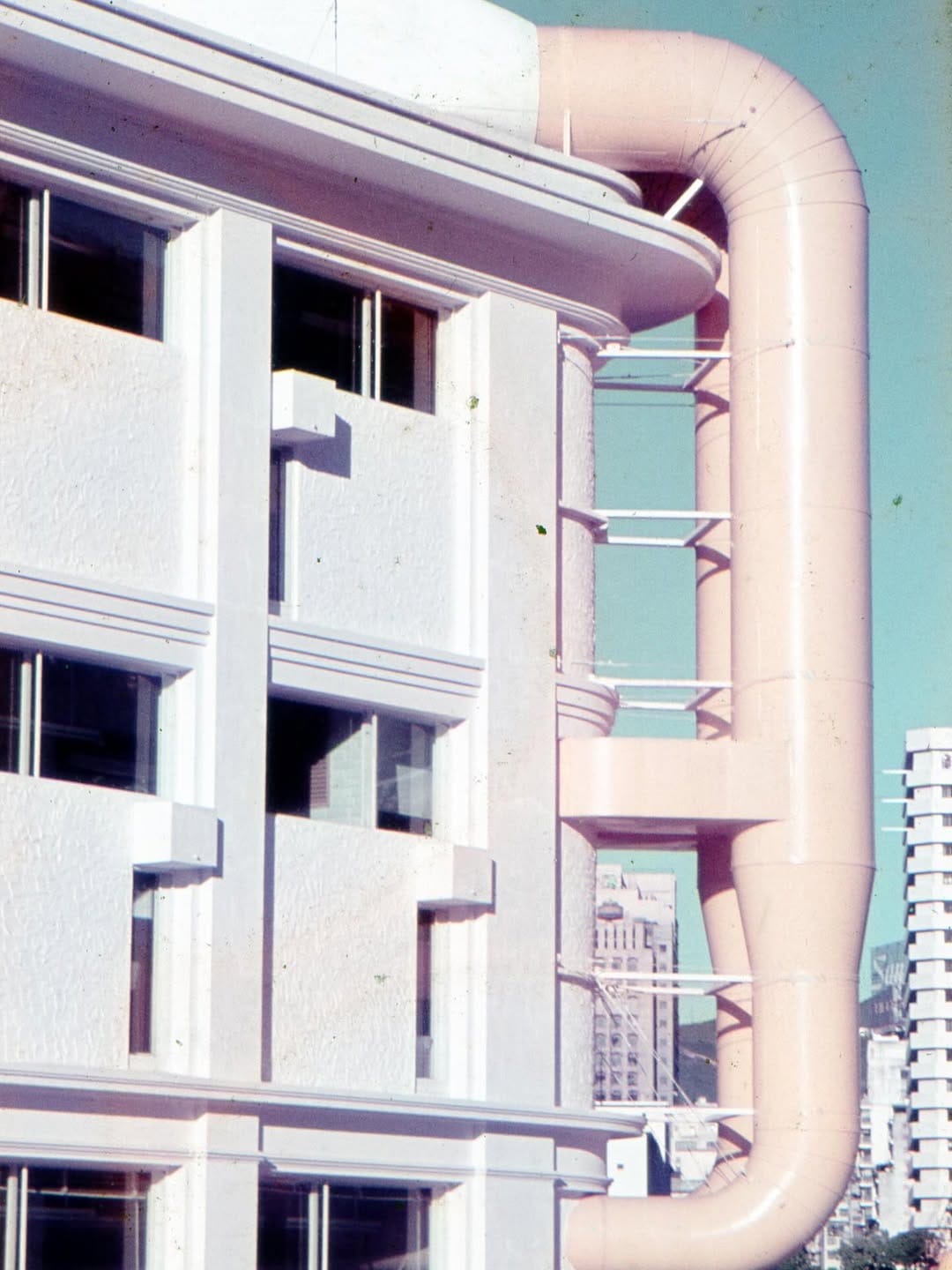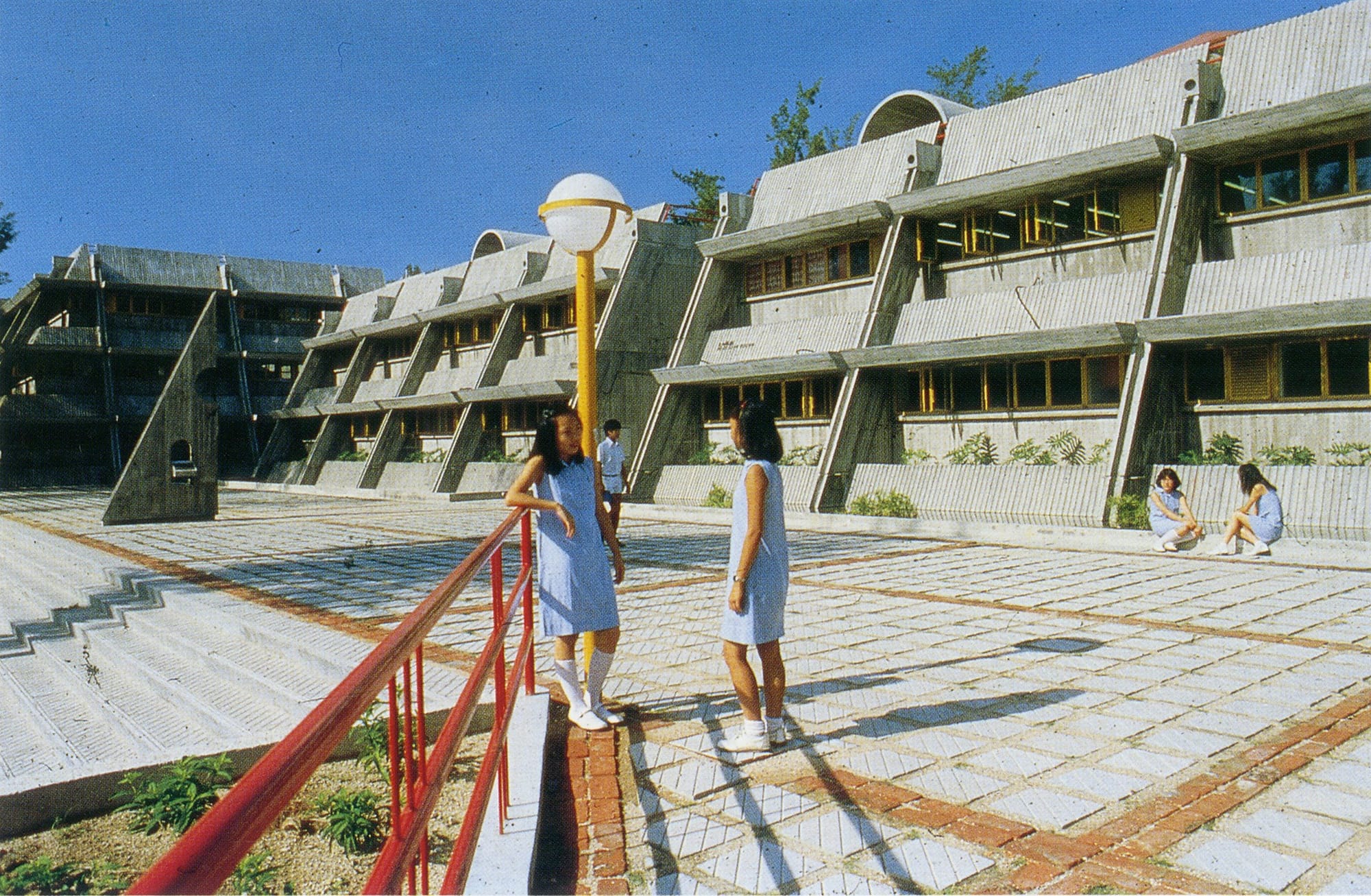 這可說是香港粗獷主義(Brutalism)的代表作,是首批獲德國SOS Brutalism組織認證的香港粗獷建築。不加修飾的清水混凝土牆面與外露的結構,展現出雕塑般的魅力。為了不讓建築壓迫周遭環境,何弢特意將立面設計成往後縮的斜面,層層退讓,與山坡地形完美結合。粗獷不等於粗糙,反而是一種誠實的建築語言。