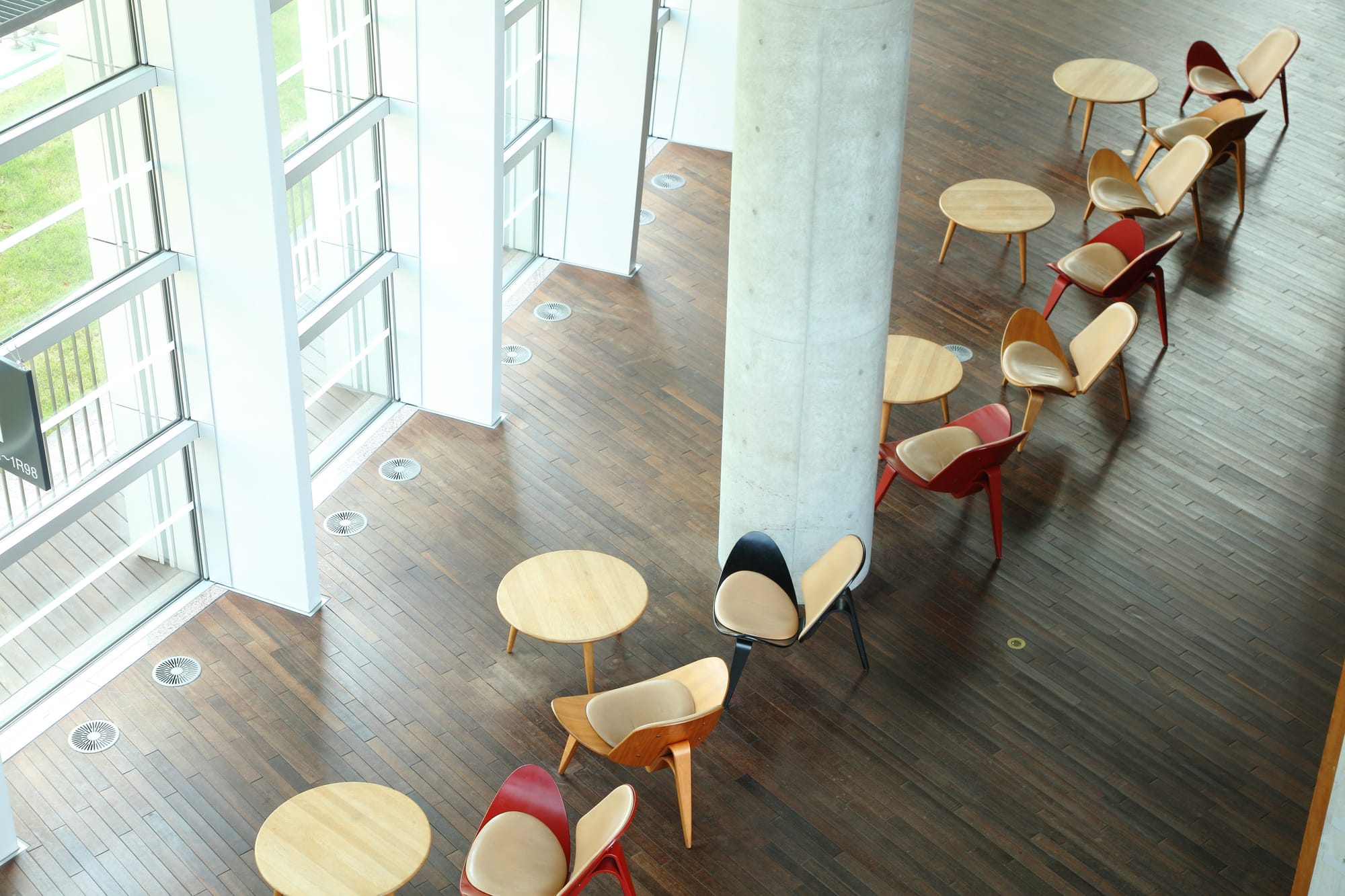要數東京市內選用最多名椅的美術館,相信非國立新美術館莫屬。館內所用作休息的椅子,張張出師有名。由丹麥設計師Hans J. Wegner的CH07到Poul Kjærholm的PK80都找得到,你想坐多久就坐多久。簡約的優雅線條,成為空間內一抹低調而奪目的焦點。
