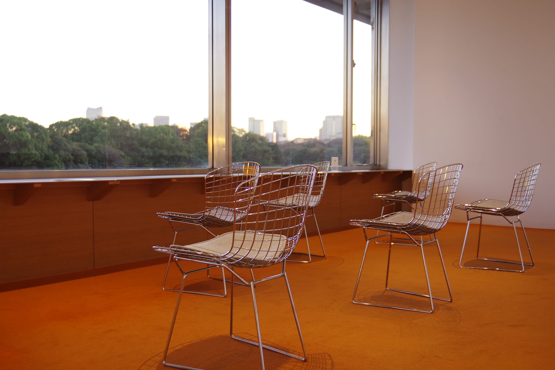 位於美術館4樓的眺望室,可俯瞰皇居與護城河的景致,是隱藏的觀景地點。櫻花盛放之時,風景更是一絕。美術館在這裡放了幾排Harry Bertoia於50年代設計的網狀結構Side Chair,每張也正面對著𥦬外,讓大家奢華地享受美景。