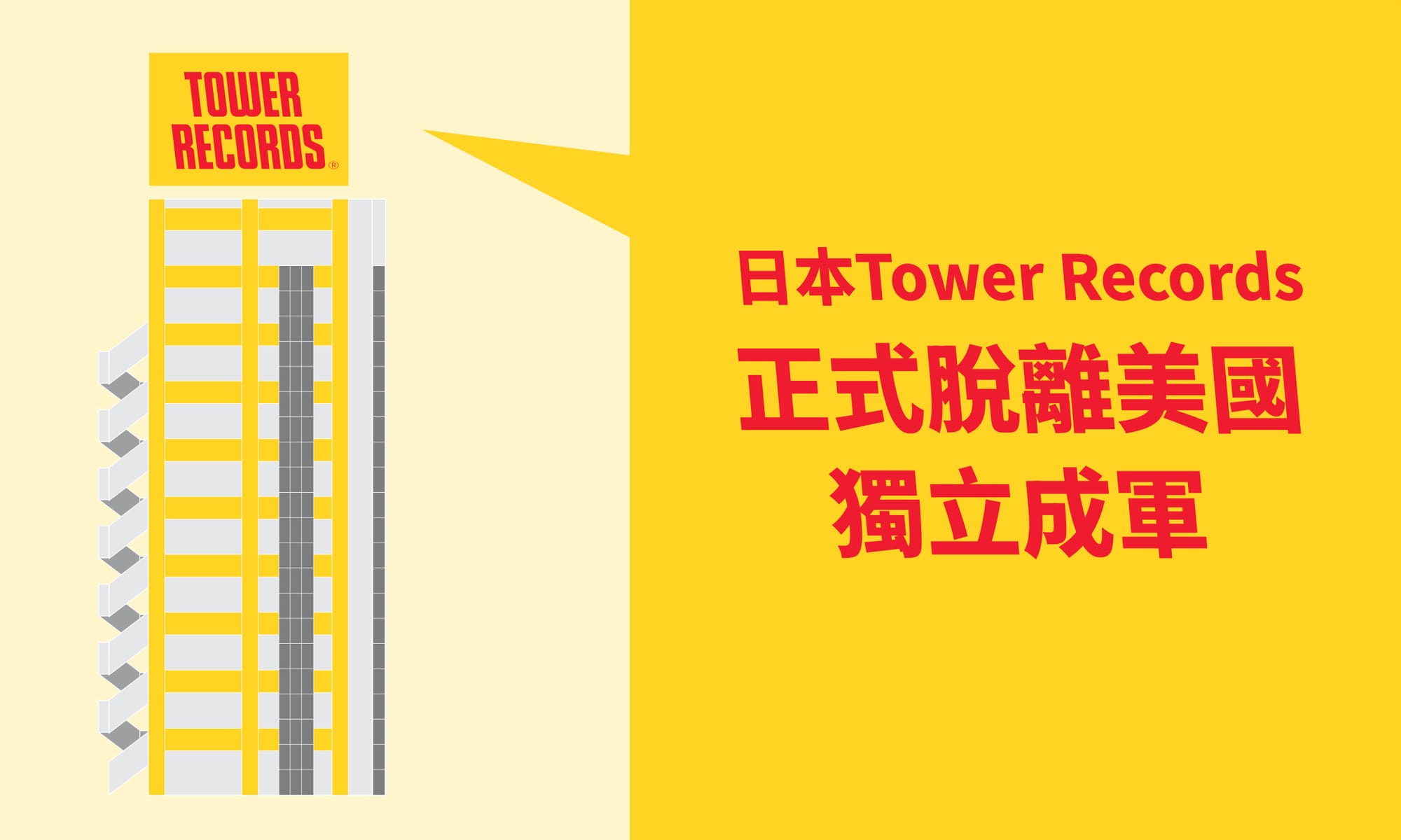 2002年可說是美、日Tower Records命運的分岔點。美國Tower Records業務僵化,實體店於2006全數結業;相反日本分部則有先見之明,於2002年進行管理層收購,購回美國總公司的版權,踏出把生意本地化的重要一步。而日本Tower Records亦由這時候起,正式獨立。
