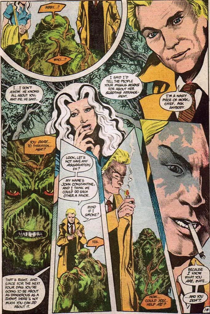 最早在《SWAMP THING #37》(1985)登場的JOHN CONSTANTINE,是動漫界其中一個著名的驅魔人兼超自然偵探角色。不論是哪一段時期的起源故事,童年悲劇也造就他那犬儒主義和看破紅塵的性格;雖然惡習纏身的他精通各種魔法巫術,但反而更常用智慧與詭計應付對手。由於題材偏鋒,DC出版社起初不把JOHN CONSTANTINE列入主流的宇宙觀,但隨後愈來愈多機會與其他超級英雄合作,更成為JUSTICE LEAGUE DARK的創始成員。
