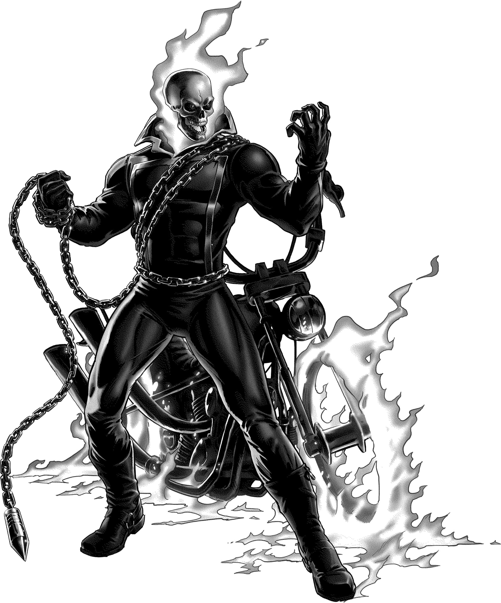 歷代GHOST RIDER之中,以在《MARVEL SPOTLIGHT #5》(1972)登場的首任JOHNNY BLAZE最為人熟悉。為了拯救病危的養父,他與惡魔MEPHISTO立下契約成為奴隸,變成騎著電單車和人體骷髏外形的GHOST RIDER。包圍全身的地獄之火不但具備癒傷作用,還可燒毁任何物質和敵人的靈魂;鎖鏈能按意願改變長度,甚至變成不同武器。可是,獲得能力的代價受詛咒孤獨一生,身邊人會受到牽連而遭遇不幸。