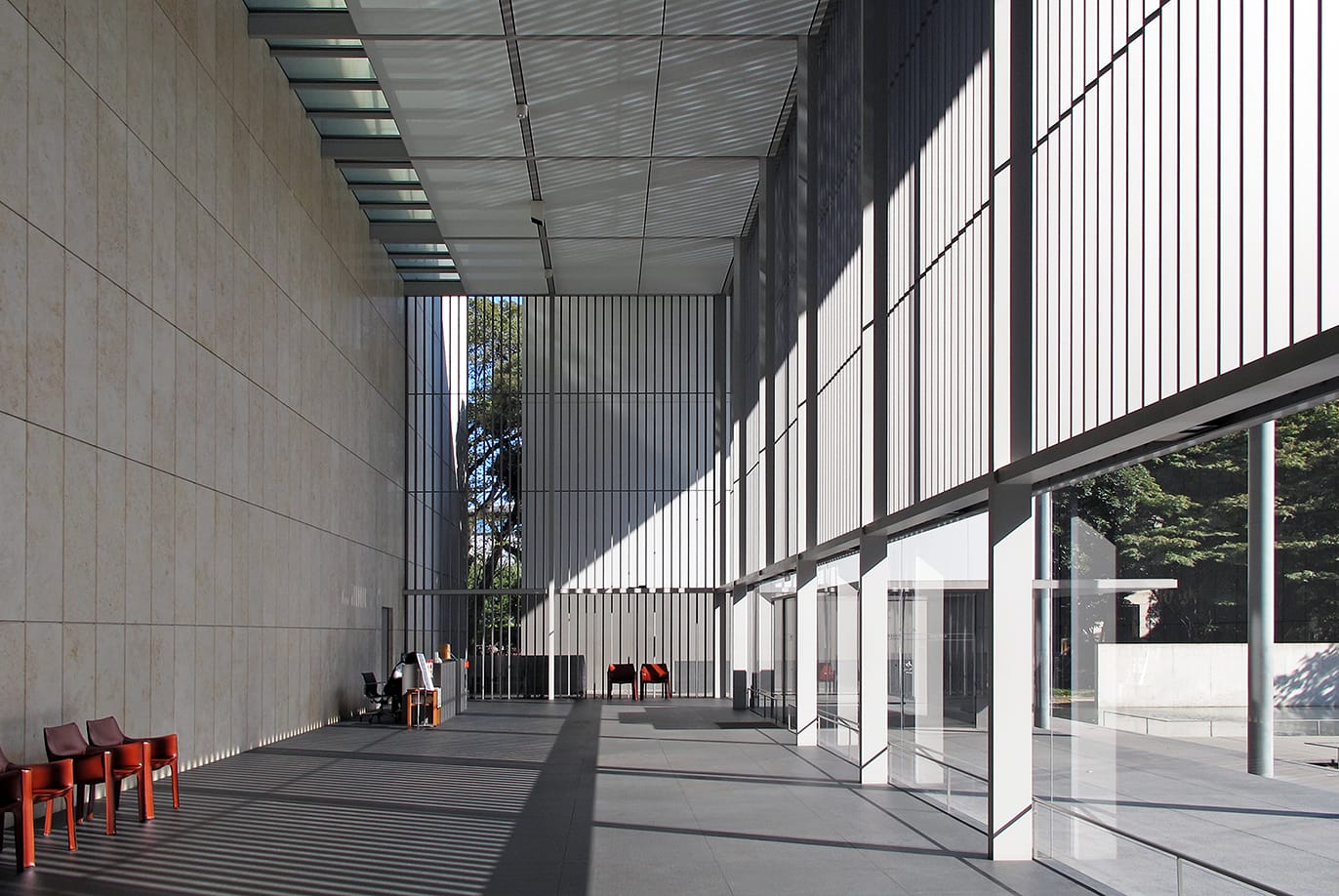 「美術館如同展示品的玻璃櫃,過於顯眼反而會遮掩內部展品,因此建築本身必須極度簡約。」