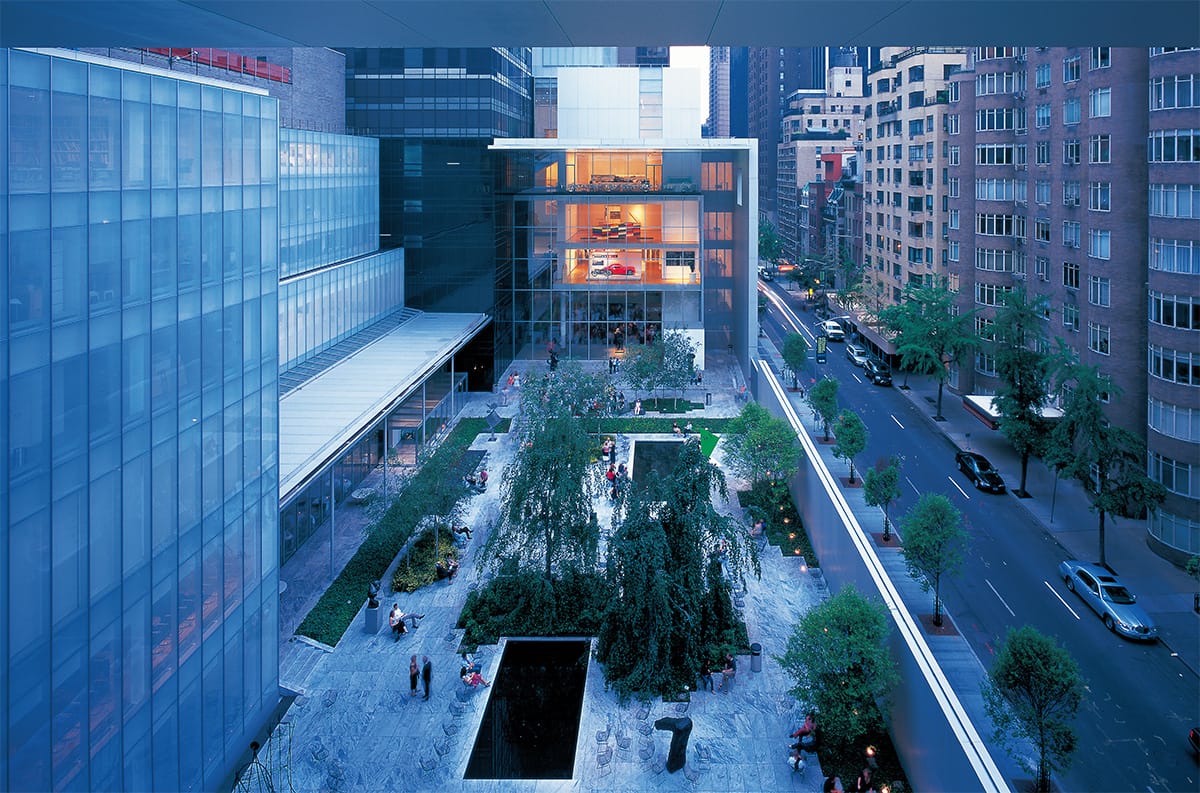 擊敗Rem Koolhaas、Bernard Tschumi、Herzog & de Meuron等國際知名建築師,谷口吉生赢得MoMA擴建企劃競賽,成為其首件日本以外的作品。建築外觀的立面採用大量玻璃與白色牆體,行人在街道上可以透過玻璃看到美術館內部的流動、藝術品的剪影,模糊了內外的界線。MoMA改造完成後的10年內,參觀人數翻倍。